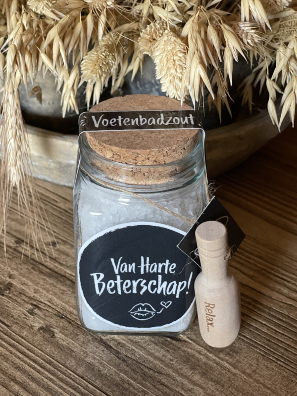 Glazen cadeaupot met 300 gr geparfumeerd voetenbadzout.
